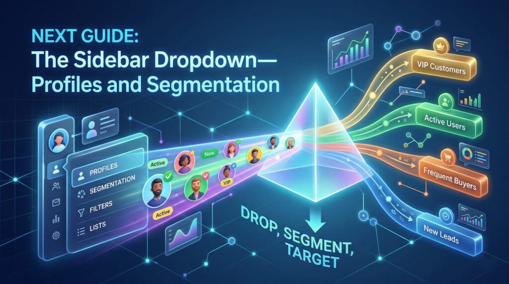 When you click on the “Customers” icon (the user profile silhouette) in the left-hand navigation, you open a targeted dropdown menu. This acts as your shortcut panel for both individual customer actions and broader segmentation.