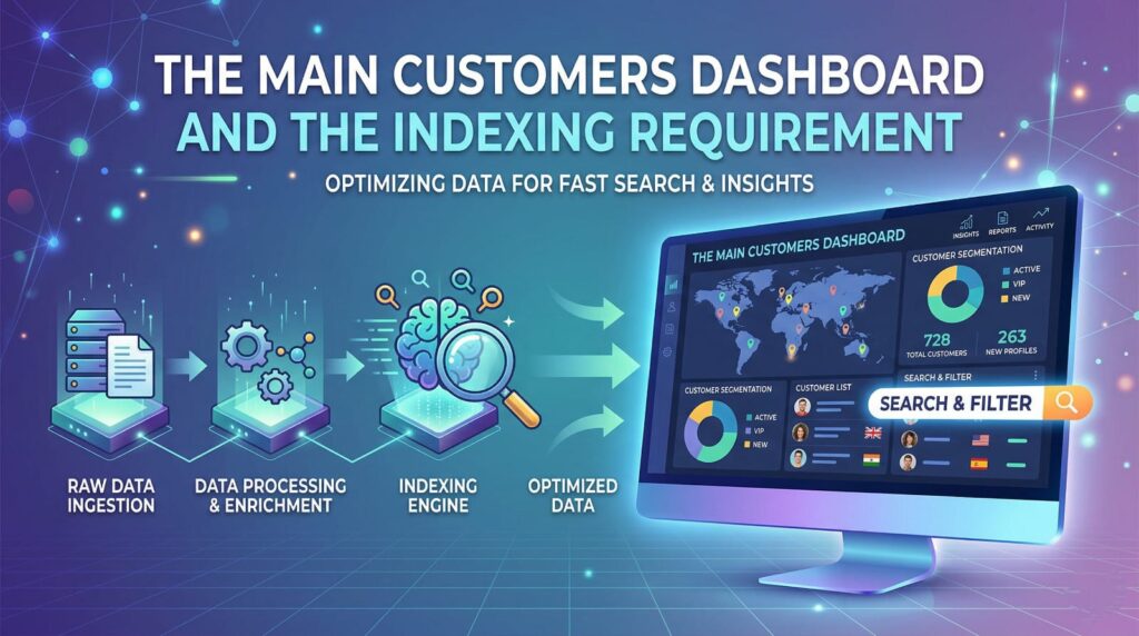 If you look closely at the main dashboard, you might notice a prominent message: “To search and filter your product and product types lists, a one-time indexing is needed… Note: Re-indexing is required after 30 days of search inactivity.” Beneath this is a bold “Index my customers now” button.