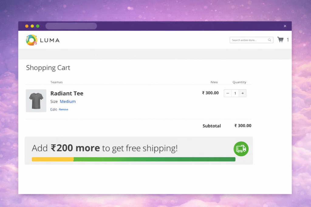 The Hikmadh Free Shipping Bar enhances the shopping experience by visually guiding customers toward unlocking free shipping in real time. With dynamic progress tracking, customizable messaging, and flexible positioning, it encourages users to add more items to their cart, ultimately increasing average order value. Easy to configure and seamlessly integrated with Magento’s native shipping settings, this extension provides a simple yet powerful way to boost conversions without affecting store performance.